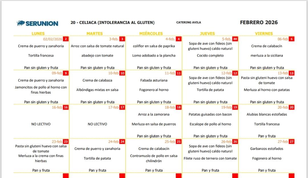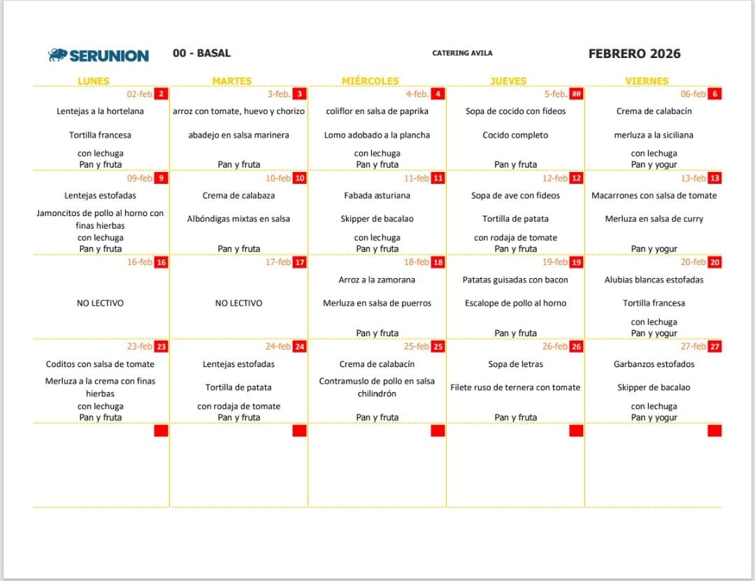 Menú de comedor » Menú de febrero